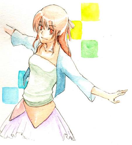 上の二枚は、トレース台を買ったときにおまけでついてきたスケッチブックに描いてみた線画に、ちょろっと色を塗ってみたもの。何回も消しゴムをかけた上に絵の具を使うと、上手く塗れないんじゃ…と思ったりもしたんですが、意外といけました。